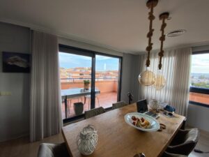 Un hibrido entre cortina textil y vertical, pudiendo regular la luz y el grado de intimidad que necesites en cada momento del dia